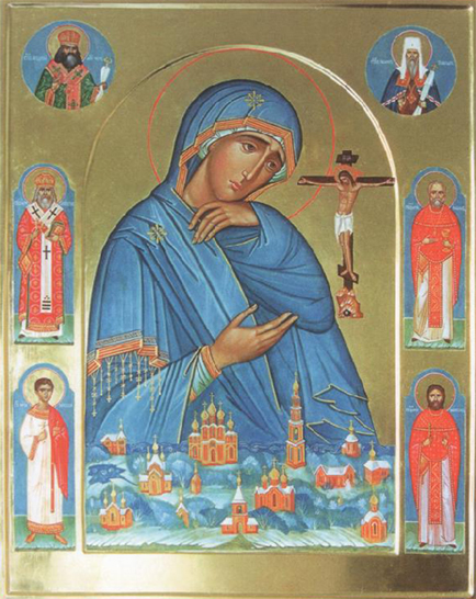 Ачаирская икона "Богоматерь Ахтырская" подарена Губернатором области Леонидом Константиновичем Полежаевым Высокопреосвященнейшему Феодосию, митрополиту Омскому и Тарскому, в связи с 75-летием со дня рождения