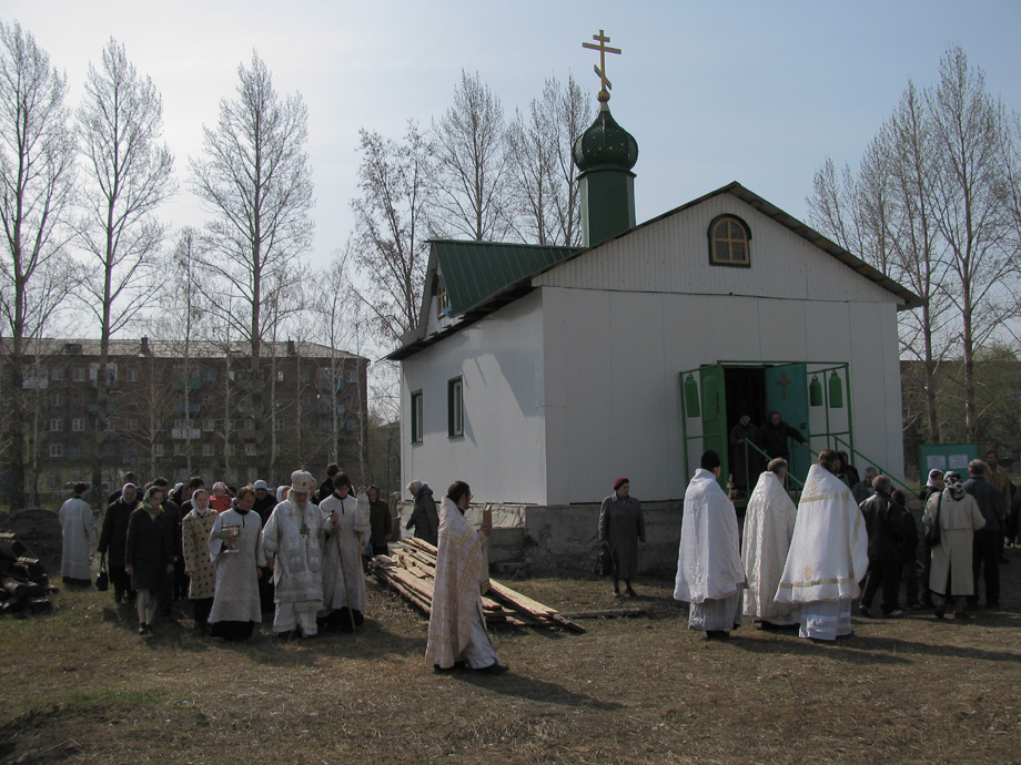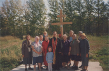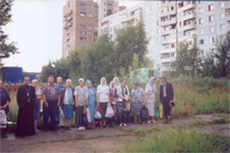 Службы под открытым небом у Закладного креста. Справа действует автостоянка